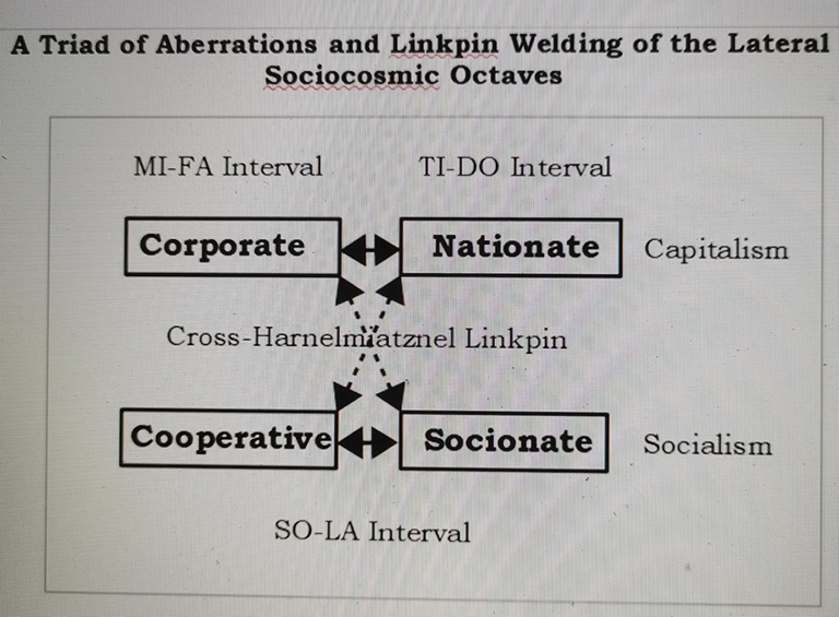 Such is the capitalistic-essenced three-centered corporates present in the 1st lateral sociocosmic stopinder beings of PDCE at the MI-FA Interval of the FA-Historical Sociocosmic Species of Capitalism, even though there might have been successful captured of the 2nd lateral sociocosmic stopinder beings by the 2+ (two plus) types of infantile and prematured old socialisms in history, namely: 1) the tryouts of mostly deceiving and failed old socialism by election methodologies (without revolution) to control the 2nd lateral governing sociocosmic stopinder beings of the TI-DO Interval which is popular in those scandinavian countries, and 2) the more aggressive and more comprehensive also old socialism tryouts of an adolescent and immature old socialism by revolutionary overthrow of the existing government in the 2nd lateral sociocosmic stopinder beings of the TI-DO Interval, and increasing the power of ownership and control of the PDCE, PESTLES(+) and NOO centralizing to one of the three levels of the 2nd lateral sociocosmic stopinder beings - that is, to the State (SO) or to the Nation (LA) and "World-of-Nations" (TI) as in Soviet Socialism (1917), and as in the National Socialism of Fascism/Nazism (1930). The four (4) "isms", namely: Capitalism and the two (2) old socialisms and one (1) new socialism - Soviet Socialism, National socialism (Nazism/Fascism) and the new Socialism with characteristics (such as Socialism with Chinese characteristics) are all sociocosmic dasein of the FA-Historical Sociocosmic Species of Capitalism except this time with a polar FA-SO-LA-TI aberration between capitalism and socialism in all their 7 fundamental and 14 lateral sociocosmic stopinder beings, and also because in each and every of their 1st lateral sociocosmic stopinder being at MI-FA Interval there has never being real PDCE democracies nor PDCE cooperatives nor PDCE collectives functioning properly there. They are all transitional sub-species of capitalism and socialism in wait for the real transition to the real SO-Historical Sociocosmic Species of Socialism with real socialism and real democracy in the economic and political fixates (P & E) as an initial landing platform for further adjustment, alignment and transformation within its collective NOO-PESTLES(+)-PDCE Carriage of its own civilizational womb to the real new civilizational-adjusted socialism, which also include a holistic historical sociocosmic specie adjustment in its PESTLES+ superstructure along its transition without quotation mark.