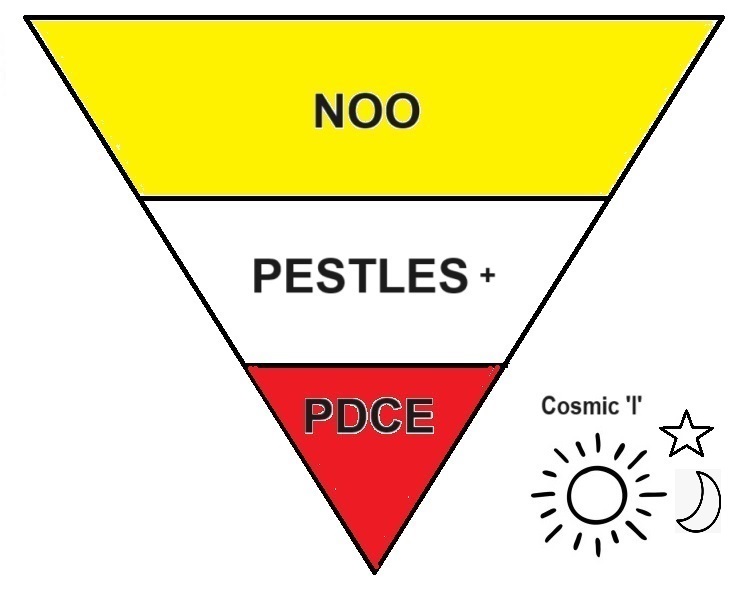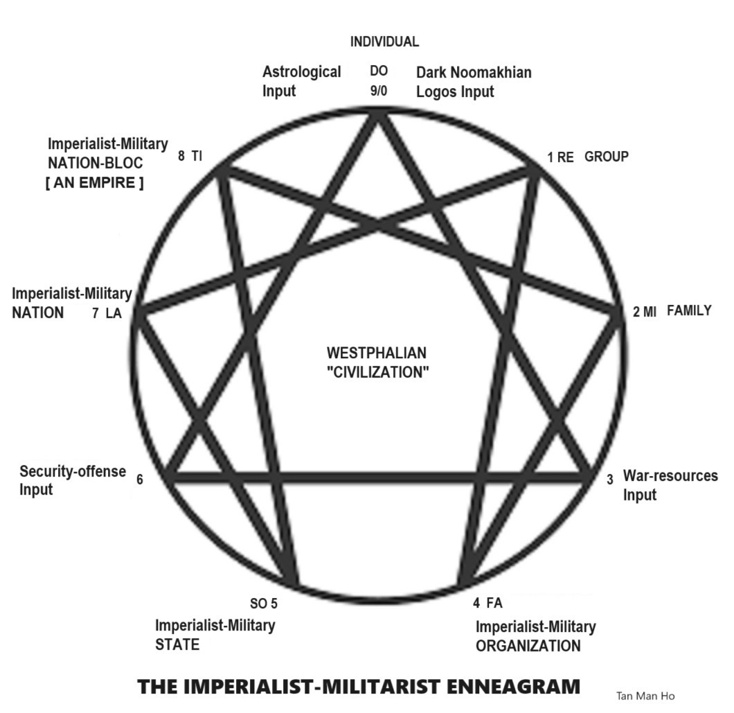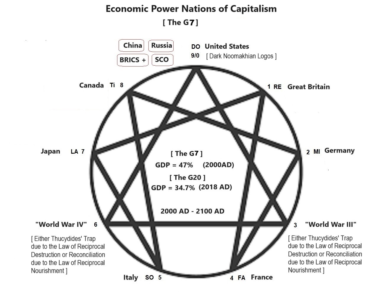 The Dark noomakhian logos already inputted at Point 0, and crystallized as the DO-stopinder of the Imperialist-Militarist Enneagram with the right-standing pyramid of contemporary NOO-driven collective four-bodied NOO-PESTLES(+)-PDCE Carriage of Westphalian civilization has now only partially invert or partially transformed into the Light noomakhian logos of advanced circularity of sociocosmic relations of all the parameters present in the PDCE-Driven collective four-bodied PDCE-PESTLES(+)-NOO Carriage of Earth civilization(s). This PDCE-Driven collective four-bodied PDCE-PESTLES(+)-NOO Earth civilization, now still emerging and growing as the BRICS(+) countries in quotation mark (or rather de-Westphalianized nationstates), shredding away gradually off its lingering Westphalian capitalistic essence-nationstate-hood previously implanted by the G7 nations back to their original source-arising stopinders, 'SO' and 'LA' of their original sociocosmic octave - striving to reduce the perturbation and restore internal and external harmony amongst the BRICS (+) countries, and finally leap out of the TI-DO Interval through more Light noomakhian logos or Aquarius Astrological Inputs at Point 9 of the Imperialist-Militarist Enneagram that has kept them in captivity for centuries during the polar FA-SO-LA-TI Historical Periods of Capitalism and Socialism.
