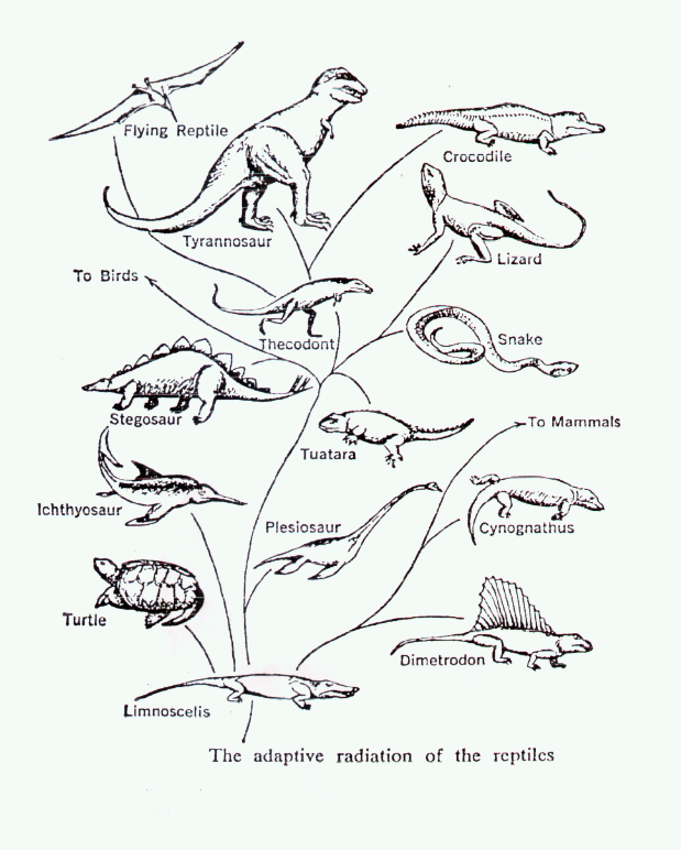 At this point the third MI-Historical Biocosmic Octave began to function with a new set of beings known by us as being-ichthyostega, being-dolichosoma, being-hylonomus, being-meganeura. being-dimetrodon, being-euparkeria and so on.  And this age is called the Age of Reptiles.  It must be remembered that some of these unfortunate beings of the earlier period of DO and RE historical biocosmic octave have already become extinct.  This period ended some 230 million years ago.